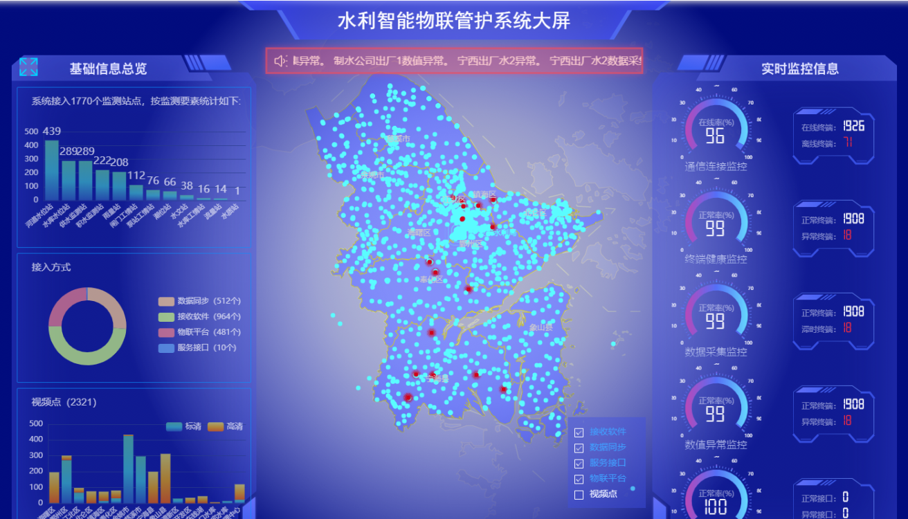 智慧水利物聯(lián)管護(hù)平臺,對水利各部門、各廠商、各類型監(jiān)測設(shè)備的,健康狀態(tài)與數(shù)據(jù)傳輸?shù)冗M(jìn)行統(tǒng)一管理,實(shí)現(xiàn)水利要素實(shí)時“感知-互聯(lián)”,強(qiáng)化水利物聯(lián)感知監(jiān)管,為智慧水利建設(shè)提供基礎(chǔ)支撐。